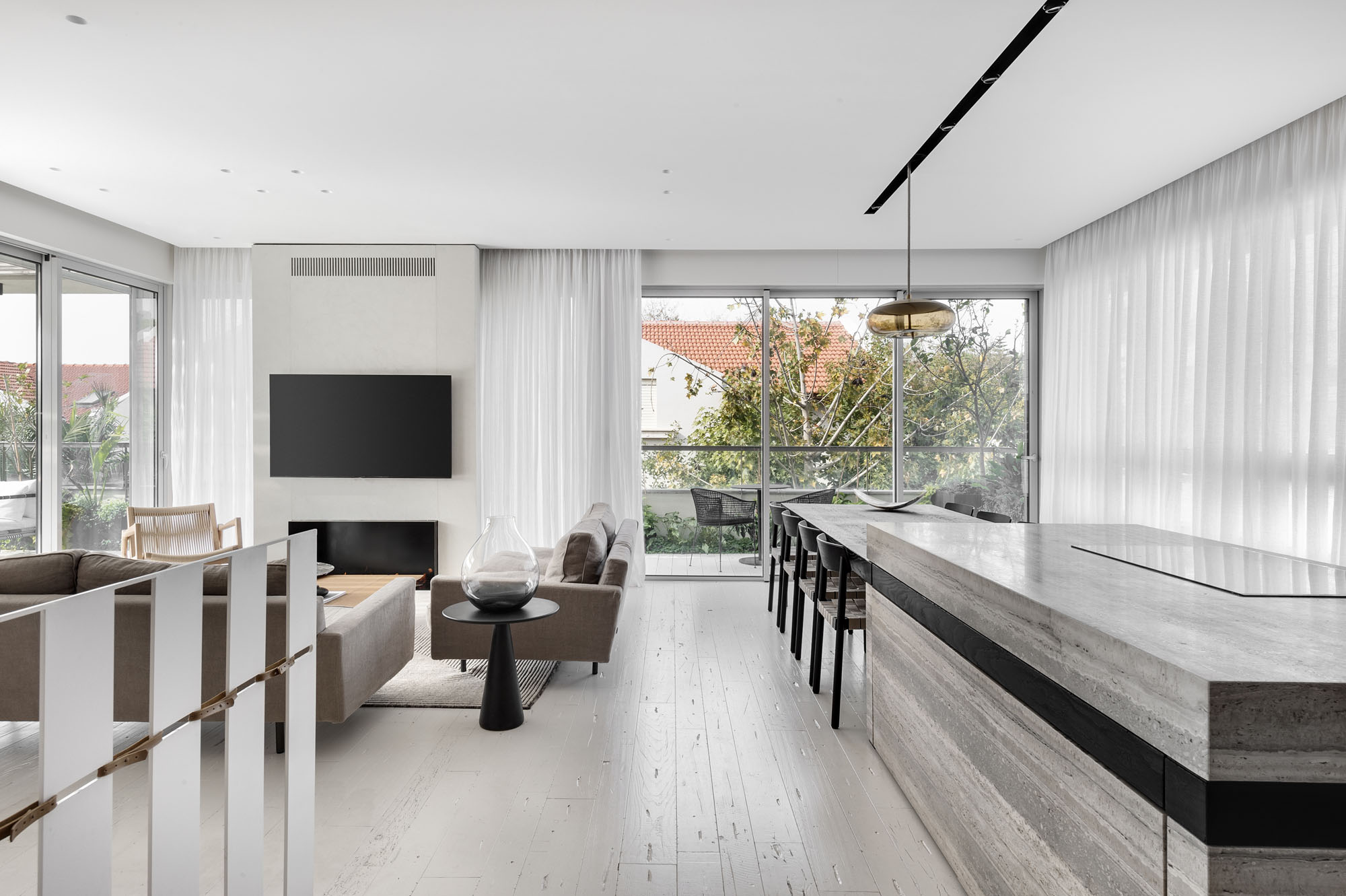 In a quiet neighborhood in Tel Aviv, we accompanied a family who chose to make a fundamental change in their lifestyle. A bold planning decision shifted the heart of the home to the upper floor, transforming an underutilized terrace into the vibrant center of daily life.
