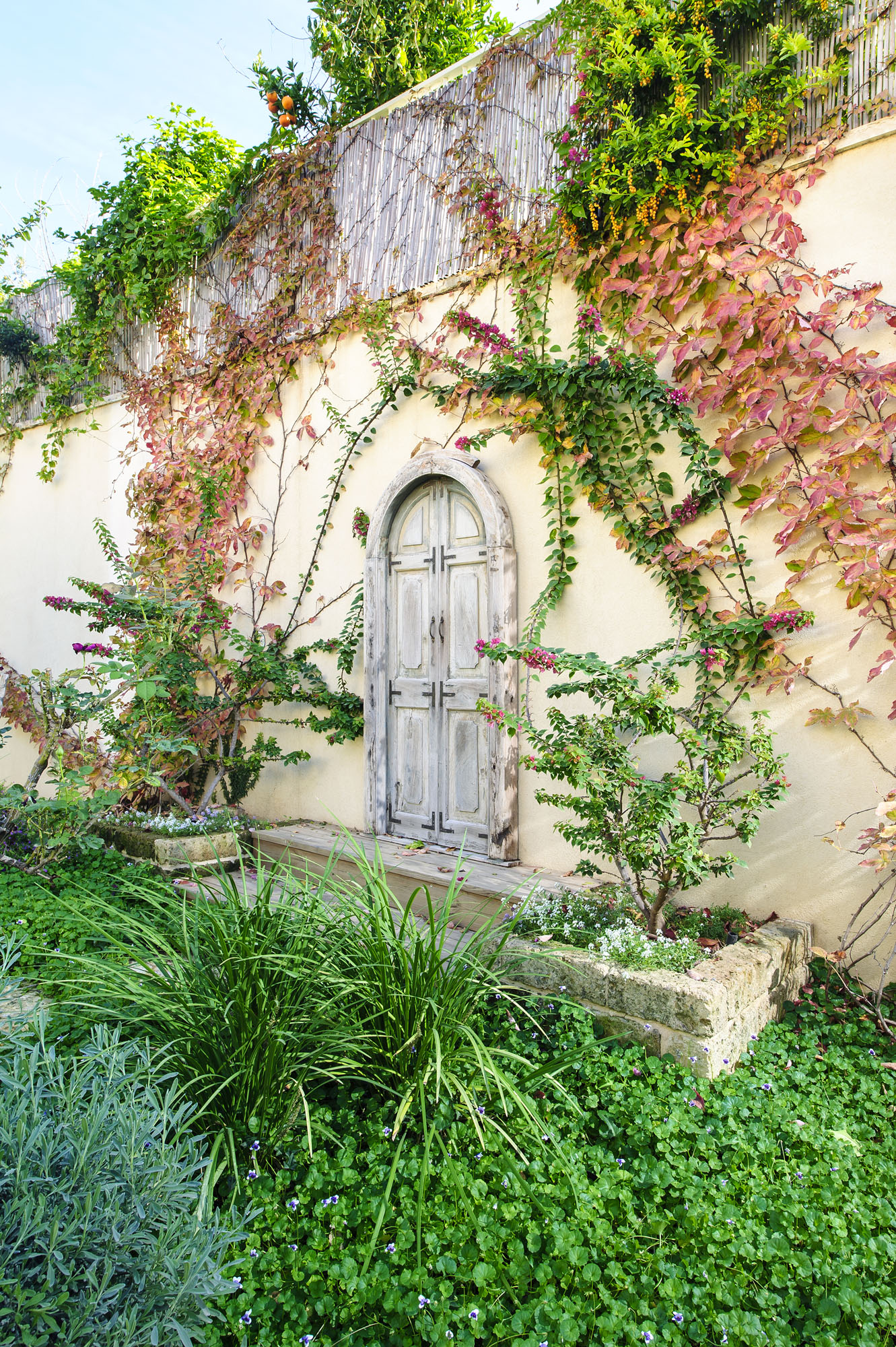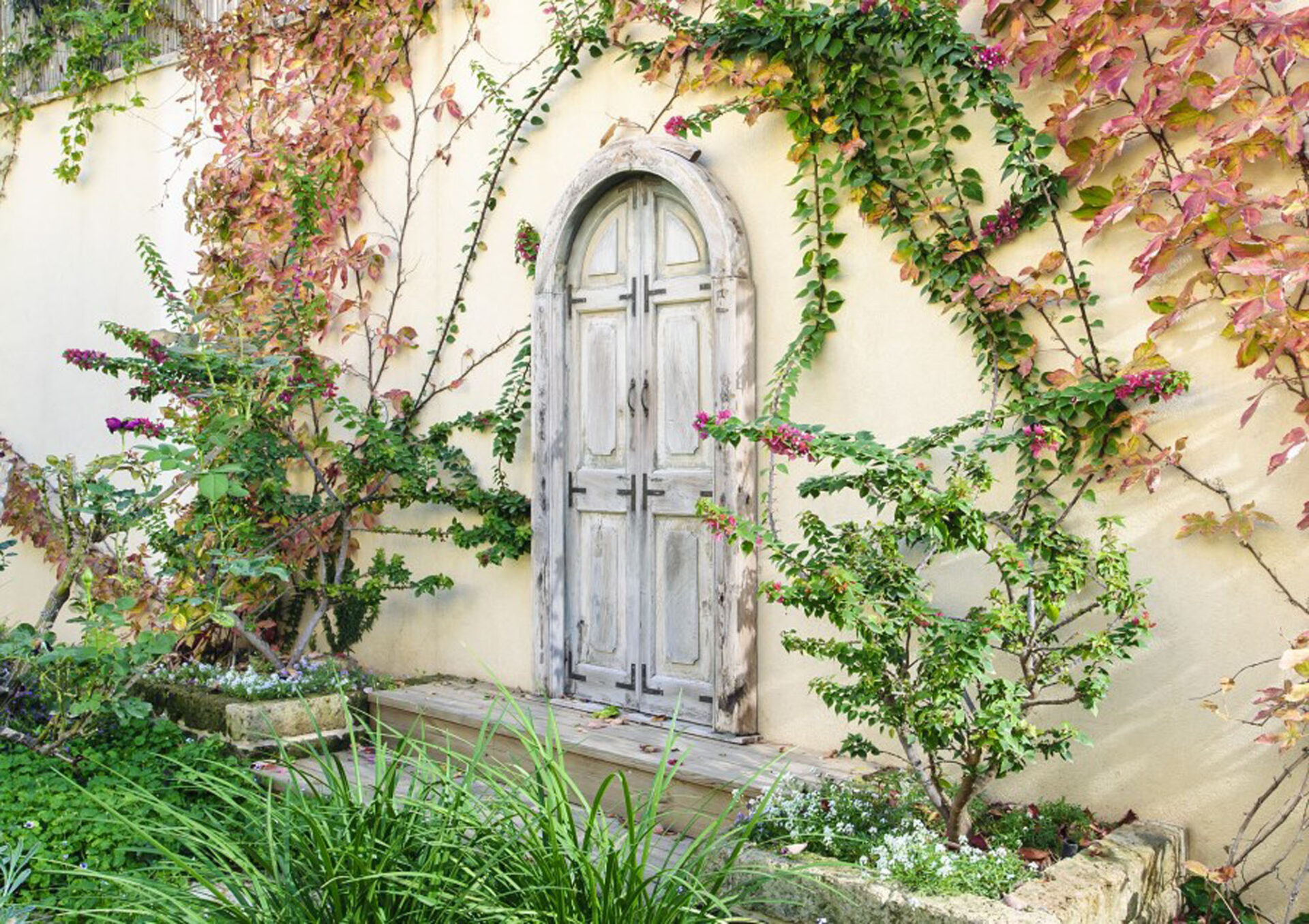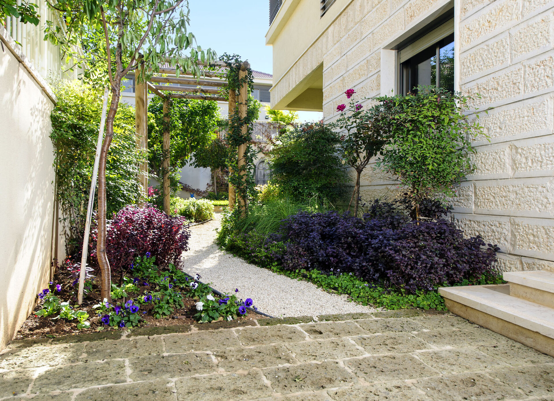 To achieve the authentic European aesthetic, we selected materials and flora that offer texture, durability, and seasonal interest: