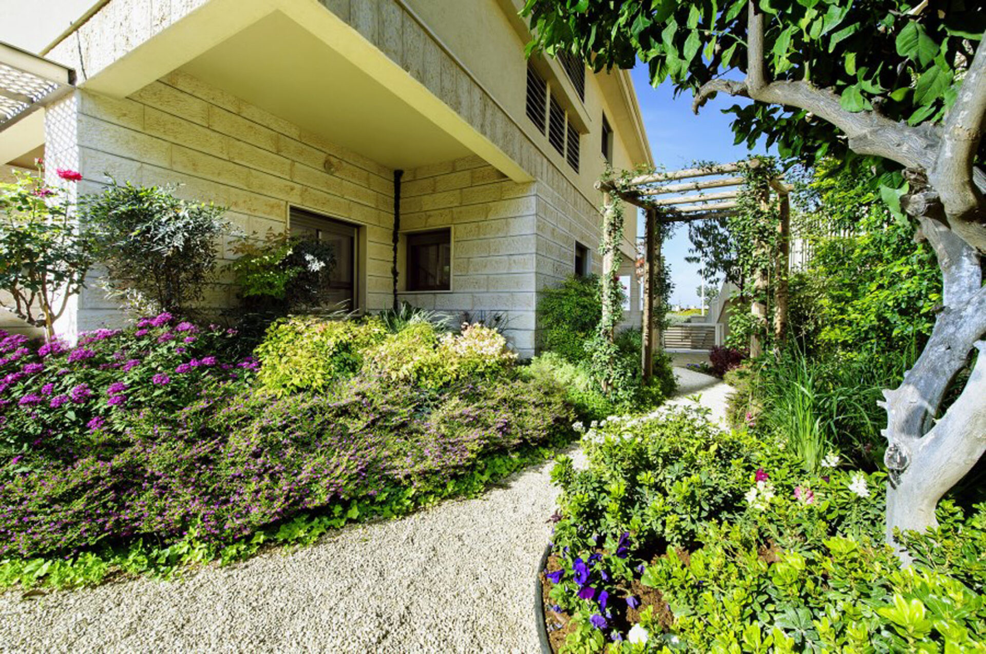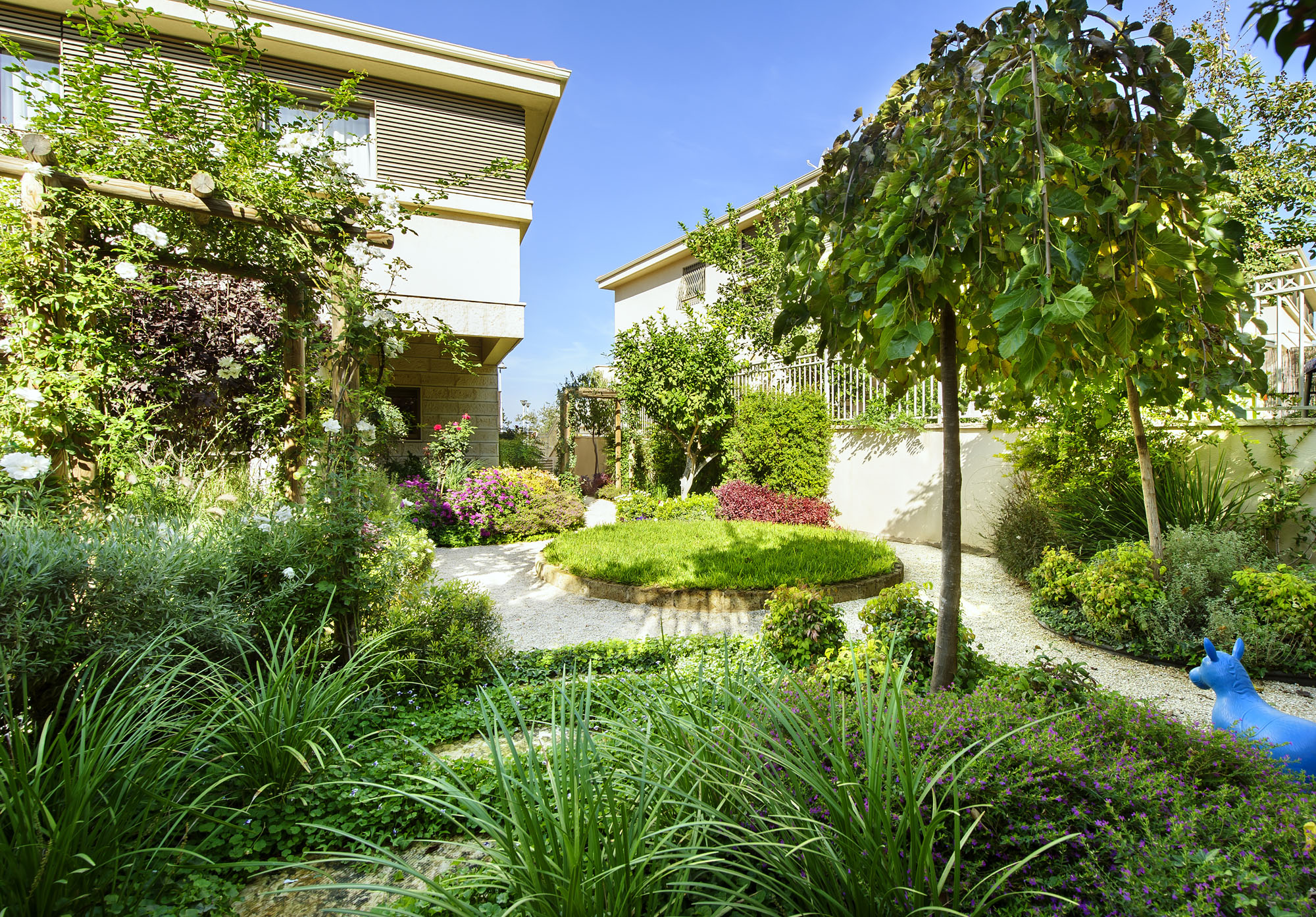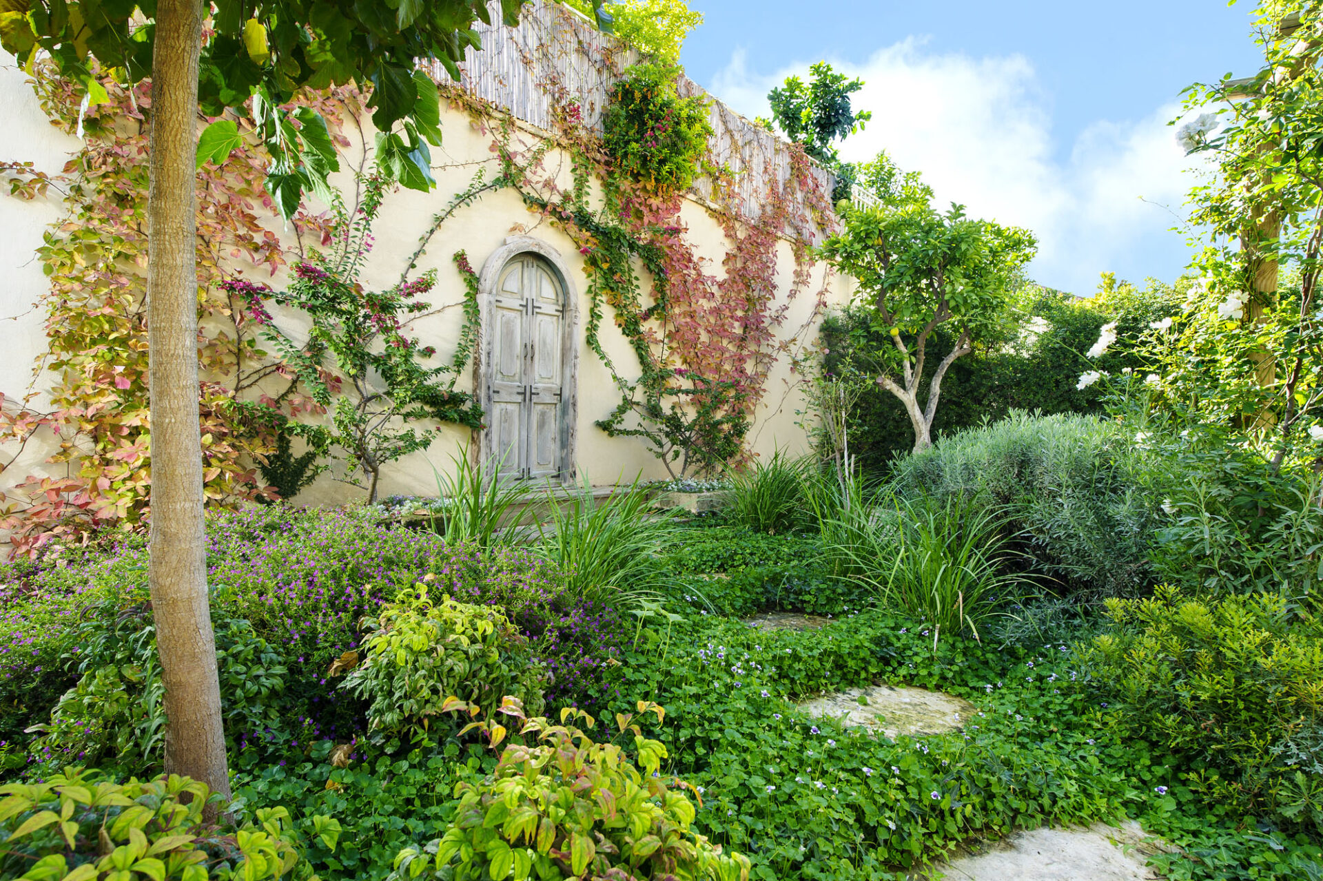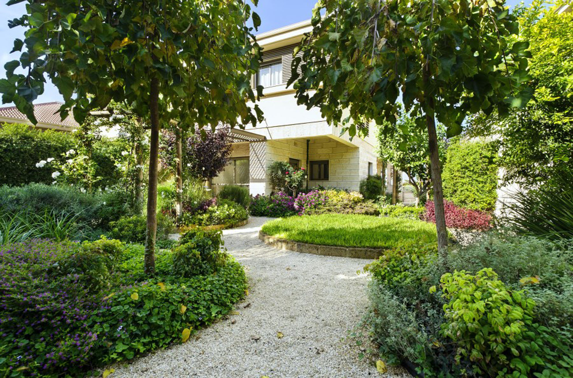 Flow and Connectivity: These rooms are linked by open pathways, guiding movement through natural corridors of mature trees and pergolas draped in climbing plants.