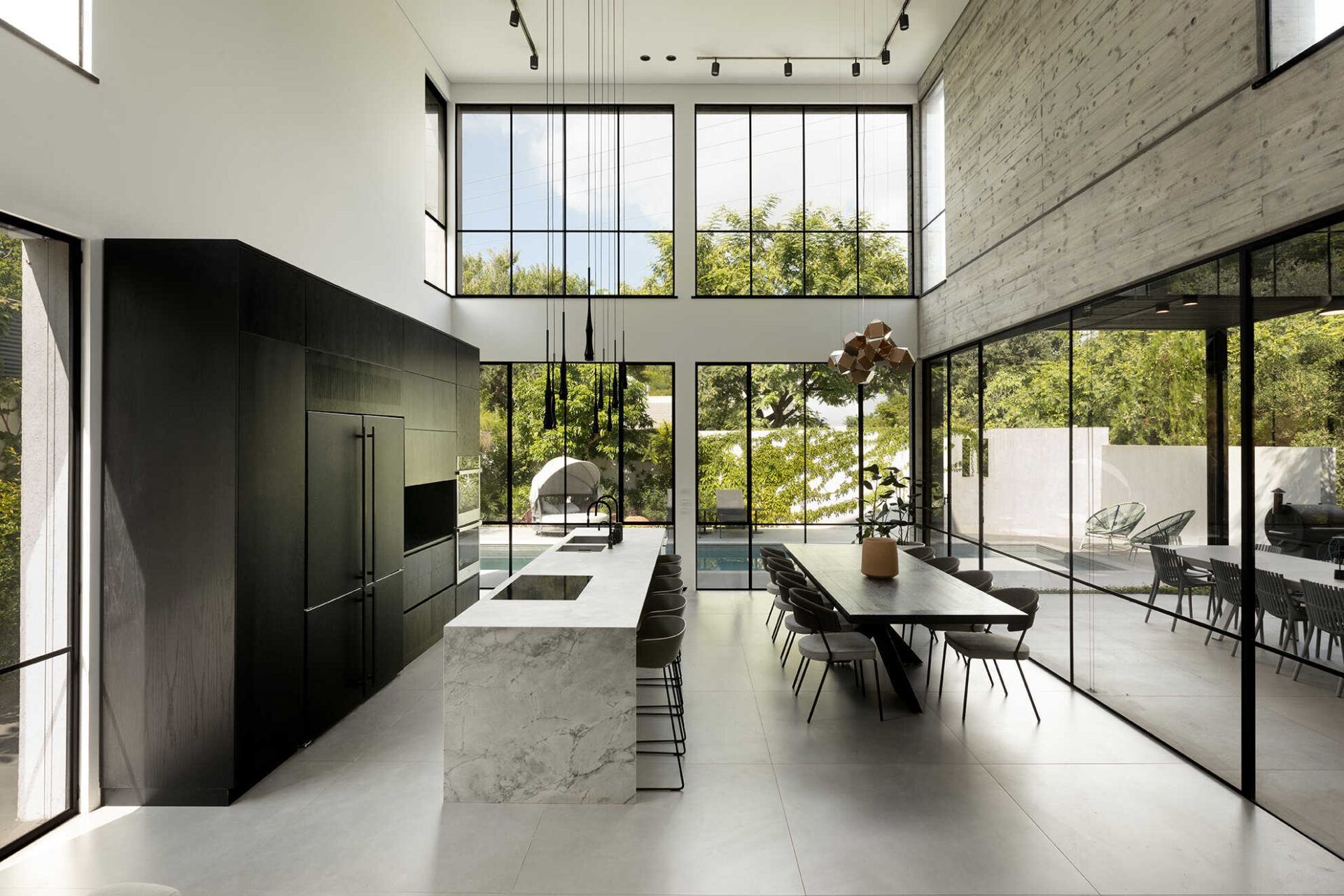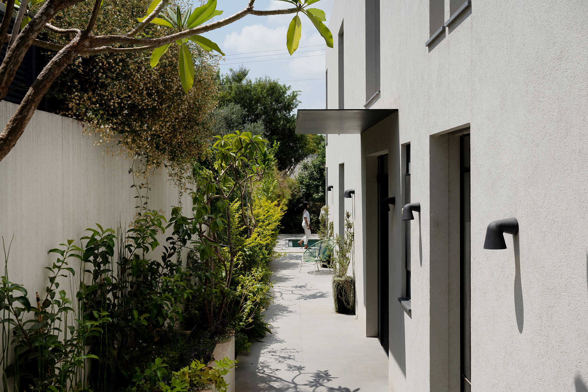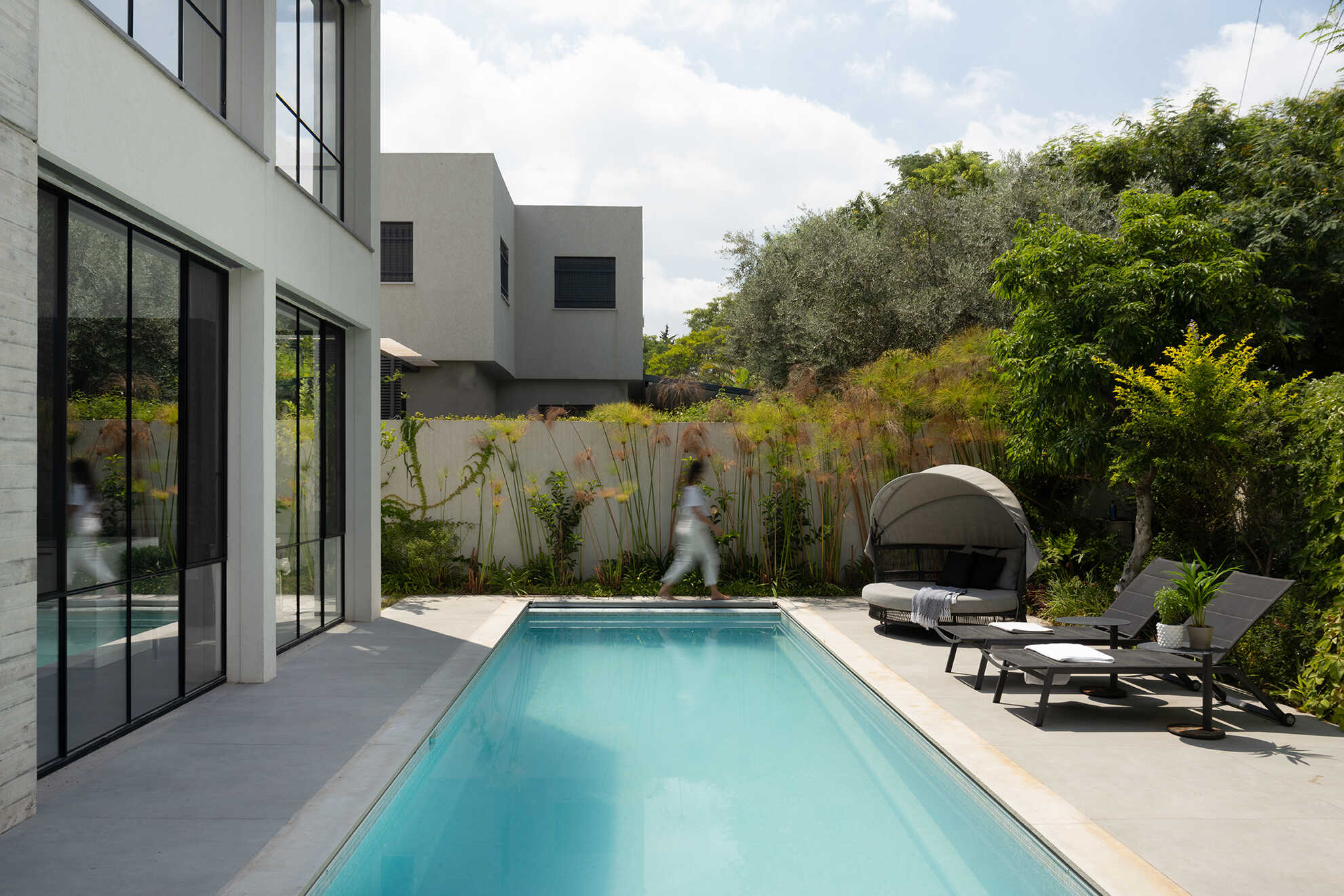 In the community of Re’ut, on a plot spanning approximately 500 sqm, we planned a unique living environment for a family of six. The project presents a compelling dialogue between modern architecture and the aspiration to create a green, practical, and calming “oasis.”