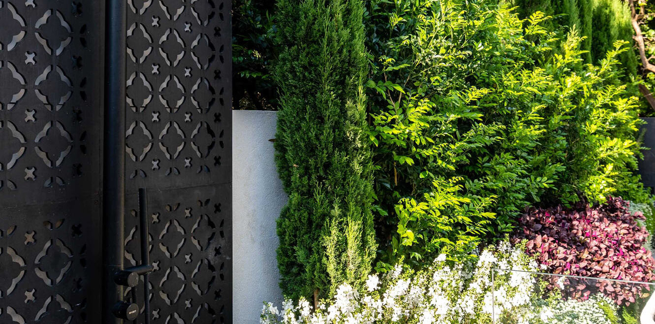 בצד המערבי בחרנו צמחייה נמוכה, נקייה ומינימליסטית, בעוד שבנקודות המפגש עם השכנים שילבנו צמחייה גבוהה וצפופה יותר, היוצרת חיץ ירוק ומבודד מבלי לפגוע בתחושת המרחב והפתיחות.